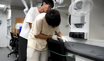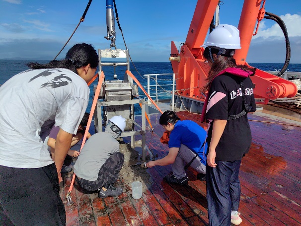 初次出海的同学们感触很深,首先是为有幸参加“同济”号科考首航的海洋综合实习而兴奋骄傲,但对部分晕船严重的同学也是巨大意志考验。黄伟捷同学坦言:“上同济号是圆了我的海洋梦!”尽管因晕船他一天未进食,却还是在同伴的帮助下坚持完成了海洋化学检测任务,他感慨道“闻到食物就想吐,但看到数据出来的那一刻,觉得一切都值了”。刘家硕等同学在晕船呕吐的情况下,仍坚持操作仪器、观察样本,让课本上的硅藻和砂岩在显微镜下有了温度。何悠、金祺晏等同学自觉参与夜班的全程值班,并协助其他同学进行采样。