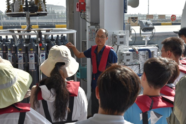 8月1日上午,刘玉柱副院长给大家做了航前动员,鼓励同学们珍惜难得的机会,充分利用船上的每一个动手实践的机会,成长为既有扎实理论基础,又有强大动手能力的复合型创新人才。紧接着“同济”号三副彭泽给大家开展航前安全培训,为大家讲解船上日常规定、甲板作业安全要求、消防知识、救生衣争取穿戴等安全操作与规范,并带领着大家从安全角度出发再次熟悉船体结构和紧急集合点,实验探测长徐以正老师带领同学们开展ctd采水器的操作与使用培训。上午11点,“同济”号准时启航,奔向星辰大海。