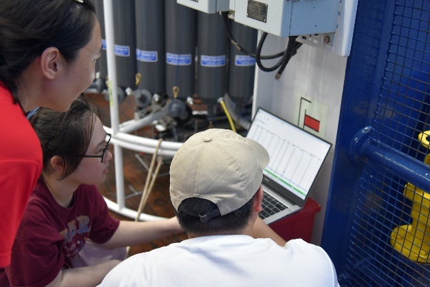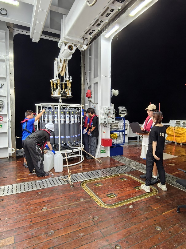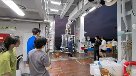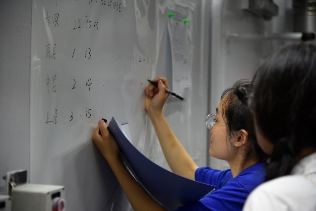 第一、二航段执行过程中分别受到第7号台风范斯高和第8号台风竹节草外围强风和涌浪的影响,除了29号因东海海域台风预警而在锚地避风外,其它时间在安全得到保障前提下,全体船员与科考人员熟练配合,基本保证每次作业的高成功率。参加过往年实习航次的老师和研究生助理均表示,“同济”号科考船的平衡稳定性、仪器操作平台的高性能和实验探测部老师的丰富经验等是采样成功率近100%的重要保障,站位调查目标完成率也达到90%以上。如果是租用其它高校或民营的较小吨位科考船,受强台风浪影响,作业成功率和站位目标完成率都会大打折扣。
