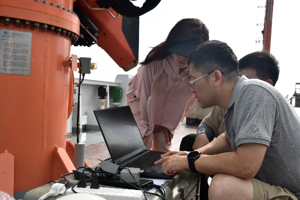 博士生陈俊源连续值班指导物理海洋方向的同学进行ctd仪器操作采样和数据解读;研究生刘沛瑜回忆本科时登上实习船首次开启海洋探索实践,到三年后以研究生助教身份登上“同济”号,身份的转变让其更深刻地理解了此次海上实习的意义。通过交流,已经看到青年学子在风浪考验中的快速成长,以热爱赴山海,更看到了同舟共济精神和海洋科考热忱的代际传递,期待新一代的同济海洋人借“同济”号之力,向着深蓝梦想加速前进,为国家海洋强国战略书写更加壮丽的新篇章。