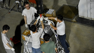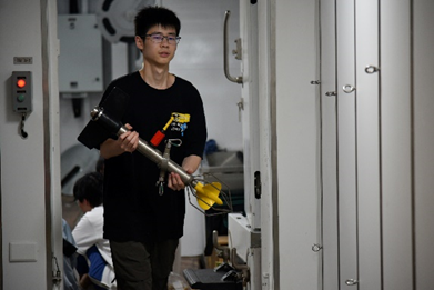 7月31日,台风“竹节草”登录的影响刚过,傍晚,“同济”号科考船又迎来了第三批科考队员。夜晚的“同济”号在黑夜中像一颗启明星,震撼鼓舞着师生们,甲板上灯火通明,吊机有条不紊地运送着上船的物资,师生们顶着船上灯火,争分多秒地将实验设备等运送到宽敞明亮的实验室中,认真地做着设备固定和物资整理的航前准备工作。