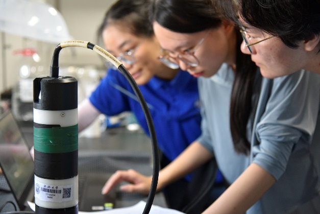 海洋地质采样技术组负责多管的安装、布放与采样;物理海洋观测组负责ctd的挂瓶、布放前检查、布放和回收采水与螺旋桨的布放;海洋化学观测组负责硝酸盐传感器的检查设置、布放回收与采集水样开展溶解氧和ph的室内测定工作;海洋生物光学观测组负责光合辐射剖面仪的准备、布放与回收工作,exo2、野外藻类分析仪的设置、布放回收工作与水样采集开展叶绿素、悬浮颗粒物和水体浮游生物的实验室内样品采集测定工作。海上通讯技术组负责水声通讯、北斗卫星通讯等设备的安装、布放测试等工作。各组工作如何有序开展,考验着大家的组织协调能力、动手实践能力和对仪器设备的熟悉程度,时间紧任务重,大家经过在第一个站点实战操作的磨合,很快不仅可以独立工作,而且还会有序地将任务交接给下一个马上接替轮转任务的小组,尽心尽力地叮嘱注意事项和细节。在航行途中,远远望到“同济·海一号”东海多圈层观测塔矗立在茫茫大海之上,这种和我们遥相呼应的感觉,熟悉亲切又令人自豪,而同学们在船上工作时的这种相互信赖、互帮互助的团体精神也将“同济”二字体现的淋漓尽致。