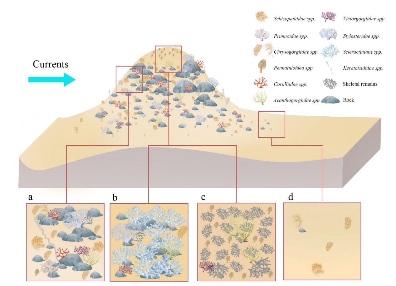 图4南海北部陆坡区某海山的冷水珊瑚分布状况概念图